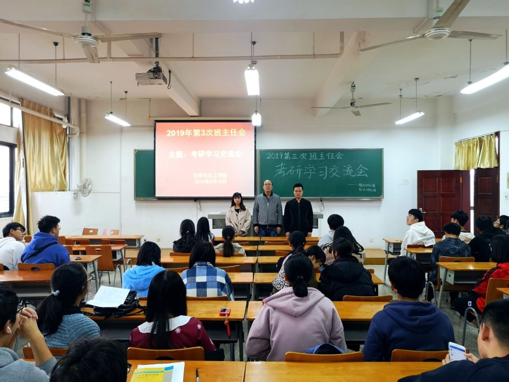 3月10日下午18:00,18级班主任于志财、何华玲老师于崇礼楼401教室共同组织开展“考研学习交流会”活动。动员会由11801班主任于志财老师主持,轻化11801与轻化11802全体同学参加了此次活动。