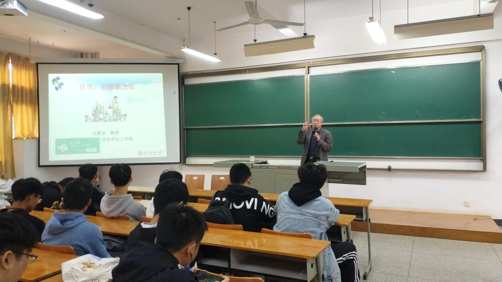 2020年度“教授开讲啦”系列讲座第二讲,在6栋211教室准时开讲。刘慧宏教授以《化学,创造新生活》为题,带领2020级学生一起探寻生活中的化学。