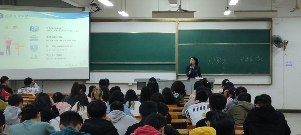 副书记尤雯文以“勤奋+自律,制成青春不迷茫的配方”为题,和2020级同学探讨大学生涯规划和大学生的底线思维红线意识。