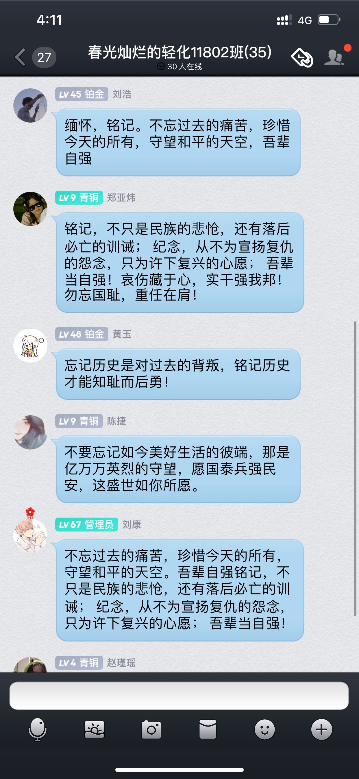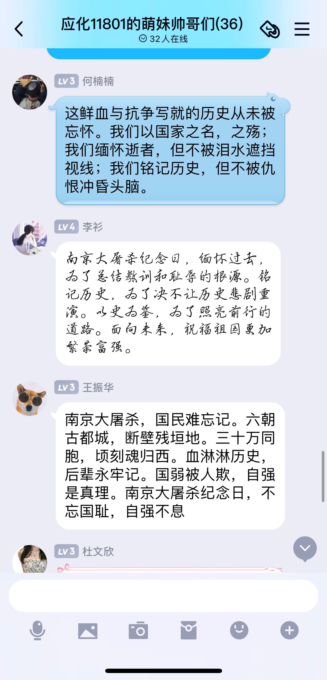 组织全体学生开展“勿忘国耻、圆梦中华”国家公祭日线上主题班会,教育广大学生铭记民族历史,缅怀死难同胞。
