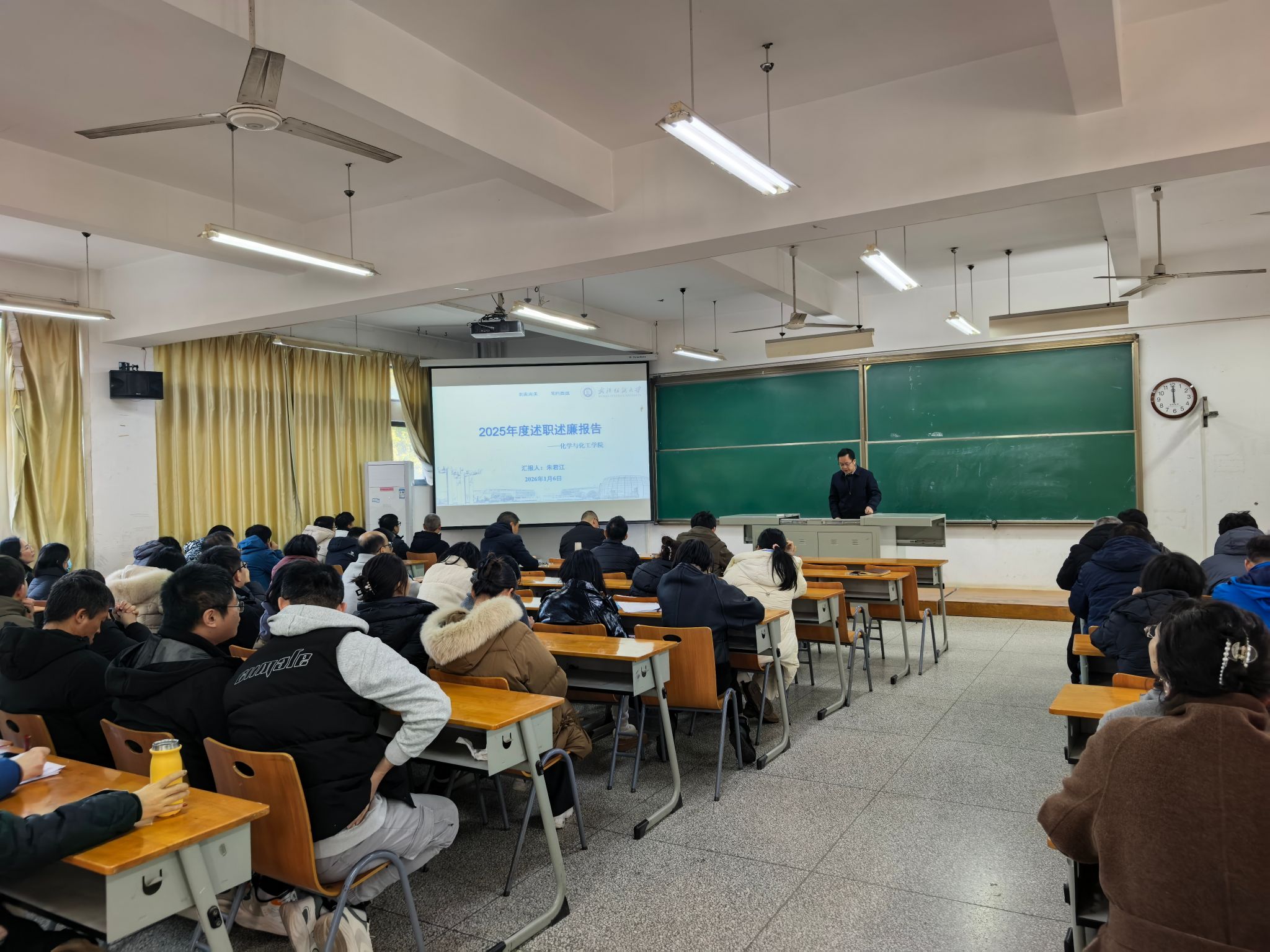 副院长刘丽君、副院长陈飞飞、副书记莫德辉分别结合各自分管领域,依次汇报履职情况。针对研究生培养质量提升、科研项目申报与管理、本科教学改革与质量监控、实验室安全常态化管理、学生思想政治教育与成长服务、国际交流合作拓展等具体工作,全面梳理年度工作亮点,如实报告廉洁自律践行情况,并主动接受全体教职工的监督与评议。各位班子成员的述职报告紧扣岗位职责,数据详实具体、重点鲜明突出,既充分展现了履职尽责、攻坚克难的实干实绩,也彰显了自我审视、求真务实的优良作风。