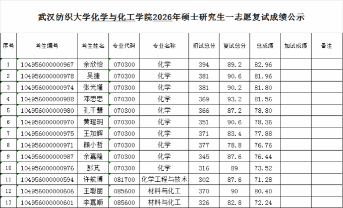 公示时间:2026年3月25日-27日。如对公示成绩有异议,在公示期内,可据实向化学与化工欧美a片 办公室反映。