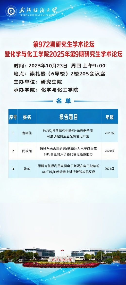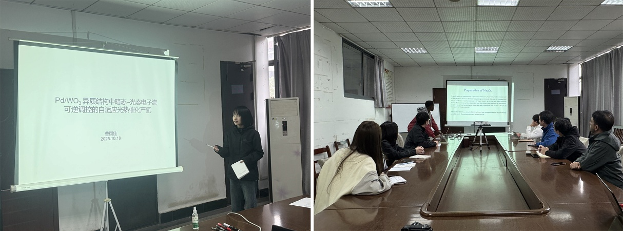 论坛上,2023级研究生曹栩佳、2024级研究生朱帅和闫政旭分别就光热催化产氢机制、BiPd合金催化还原性能、以及甲醛为氢源的转移加氢反应等研究方向作了学术报告,系统展示了其实验设计、理论分析及创新成果。