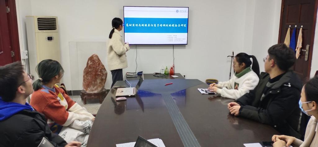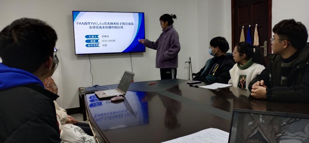 应化11902班李欣逸以“高耐盐性丙烯酸类阳离子增稠剂的制备与性能研究 ”为题,详细介绍了聚丙烯酸类增稠剂的制备过程以及和国内外同类产品的性能比较;11901班刘耶以“基于废旧纺织品的发光纳米粒子的制备以及对重金属离子Cr的检测”为题讲述了用废旧纺织品制备碳量子点的方法和铬离子的检测原理,达到以废治废的目的;应化11802班曾柳祎以“PAA改性YVO4:Eu荧光纳米粒子的合成及在印染废水检测中的应用”为题介绍了荧光材料的制备以及对磷酸根选择性检测的原因。