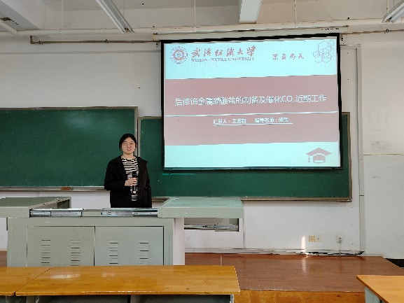 本次研究生学术论坛由周京慧、易捷、王艺新、杨智慧、吴宇鸣5位21级研究生作了关于光热转换材料及磷酸盐催化的相关研究的报告。