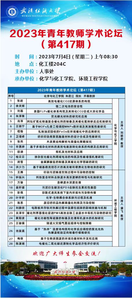 2023年7月4日上午,2023年第3期青年教师学术论坛在阳光校区崇礼楼(6号楼)204 C举行。28位青年教师汇报了各自研究成果。本届论坛由欧美a片 人事处主办,欧美a片 和环境工程欧美a片 联合承办。欧美a片 院长朱君江教授为论坛致欢迎辞,环境欧美a片 院长潘飞教授和欧美a片 刘丽君教授主持论坛。