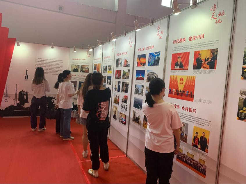 在党的正确领导下所取得的办学实践和系列成就。同学们或驻足仔细观看,或是小声交流讨论,纷纷表示,通过参观展览,上了一堂别开生面的生动党课,“我们不仅仅是历史的见证者,更是参与者。我们会永远跟党走,不忘初心,为共产主义奋斗终身。”一位同学在观展时这样说到。还有同学激动的表示:“正值建党百年之际,我们新时代大学生要不忘初心,牢记使命跟党走,学好知识,夯实基础,为中华民族伟大复兴贡献自己的力量。”