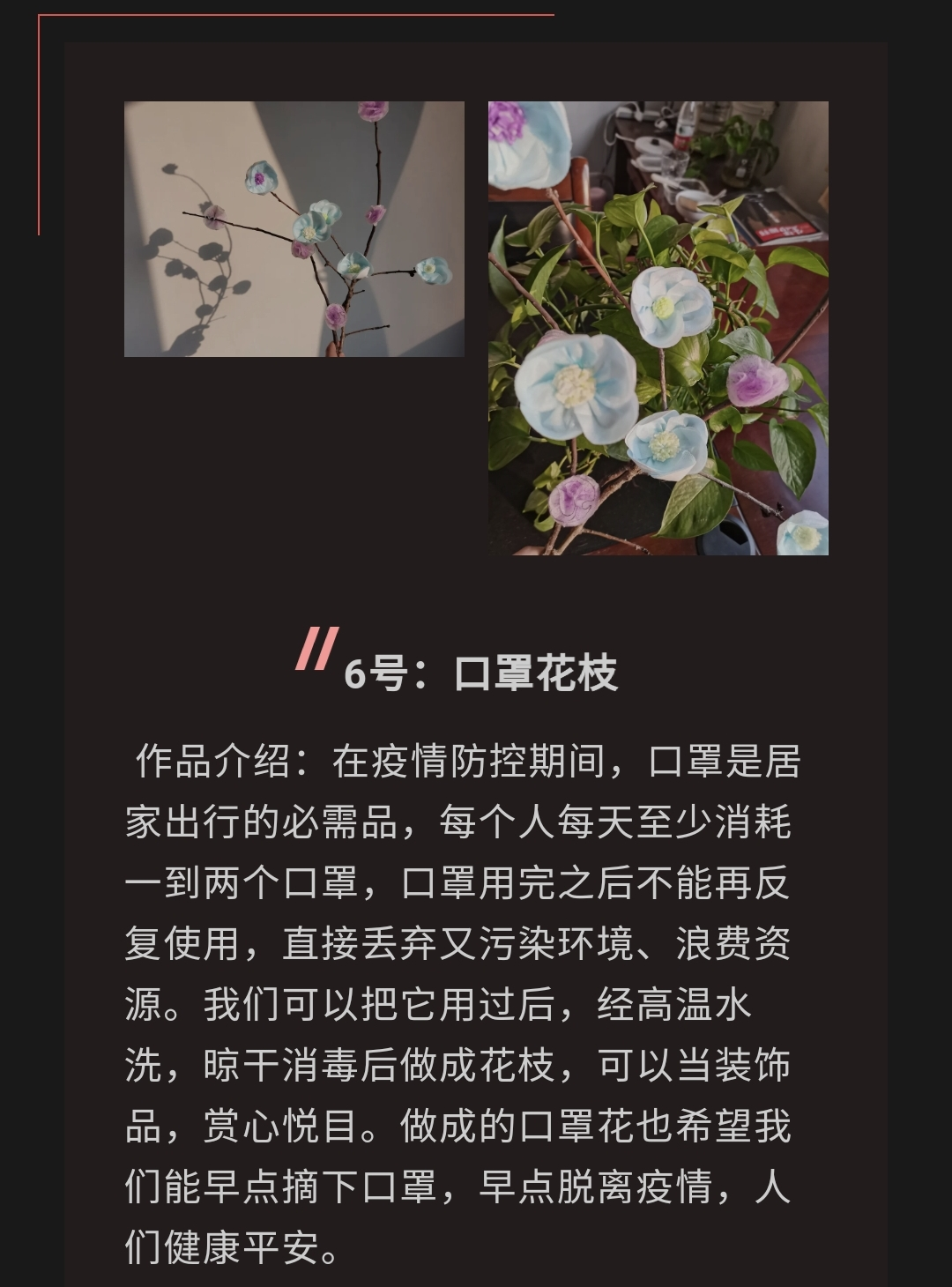 学生提供一个展现自我个性才能,挑战自我想象能力并肯定自我鉴定自我的一个平台。此项活动从2021年11月开始,历时一个多月,以“阳光青春,环保纺大”为主题,围绕"废物利用、环保创新”,以“绿色、创新、快乐、睿智、团结"为核心展开丰富的想象,利用废旧物的精心设计,让其发生发挥全新的功能。