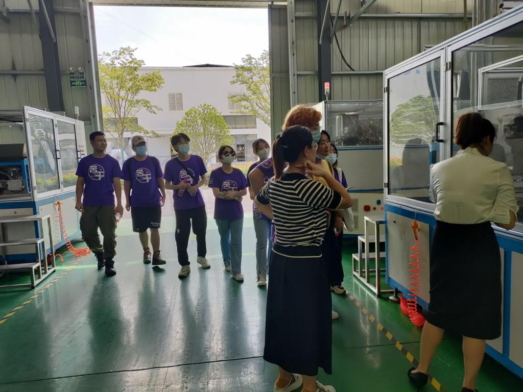 “挑织楚韵”暑期社会实践团前往湖北百丝祥纺织科技有限公司、湖北宇星水钻有限公司进行企业调研学习,近距离感受生产过程。