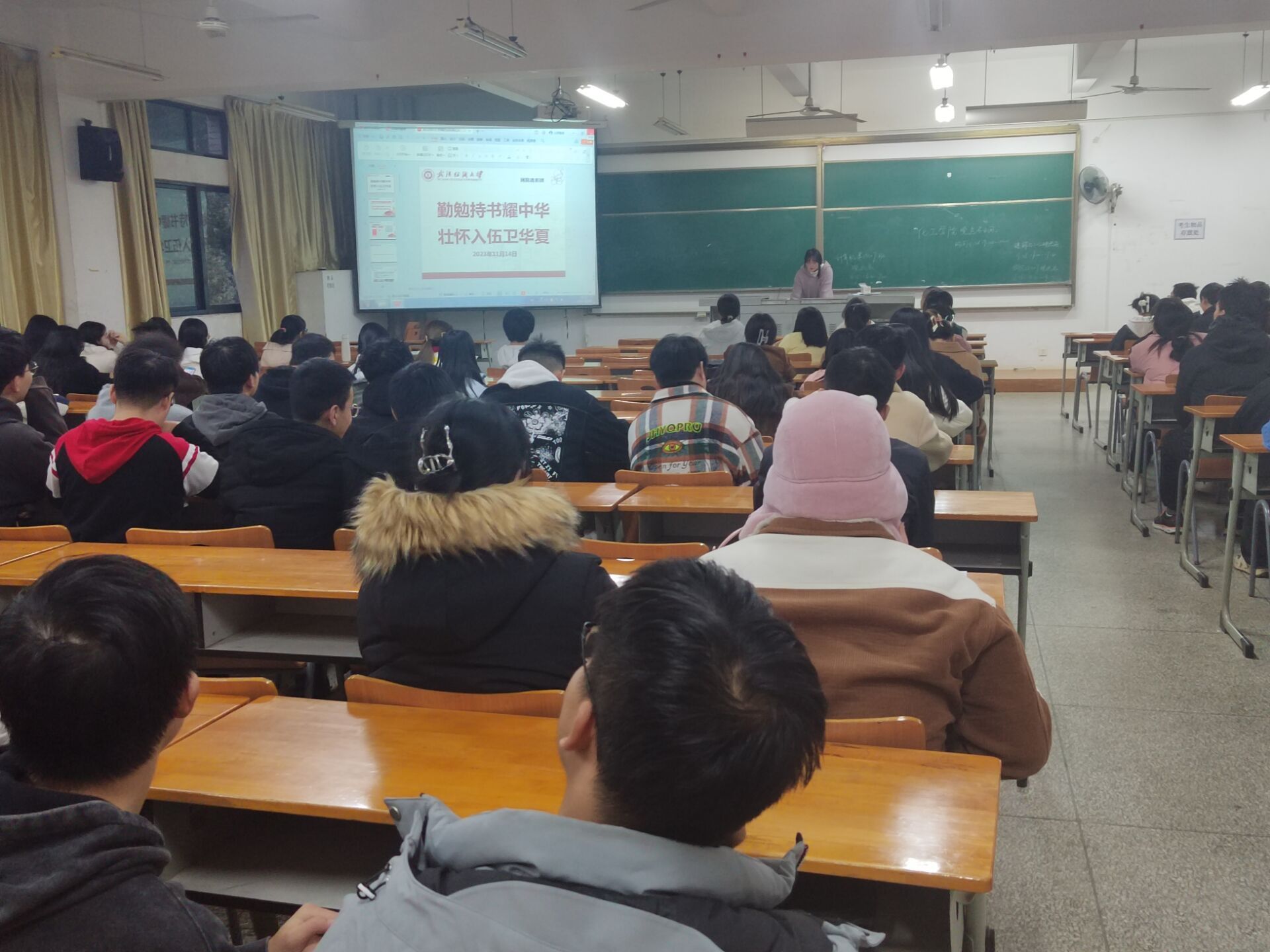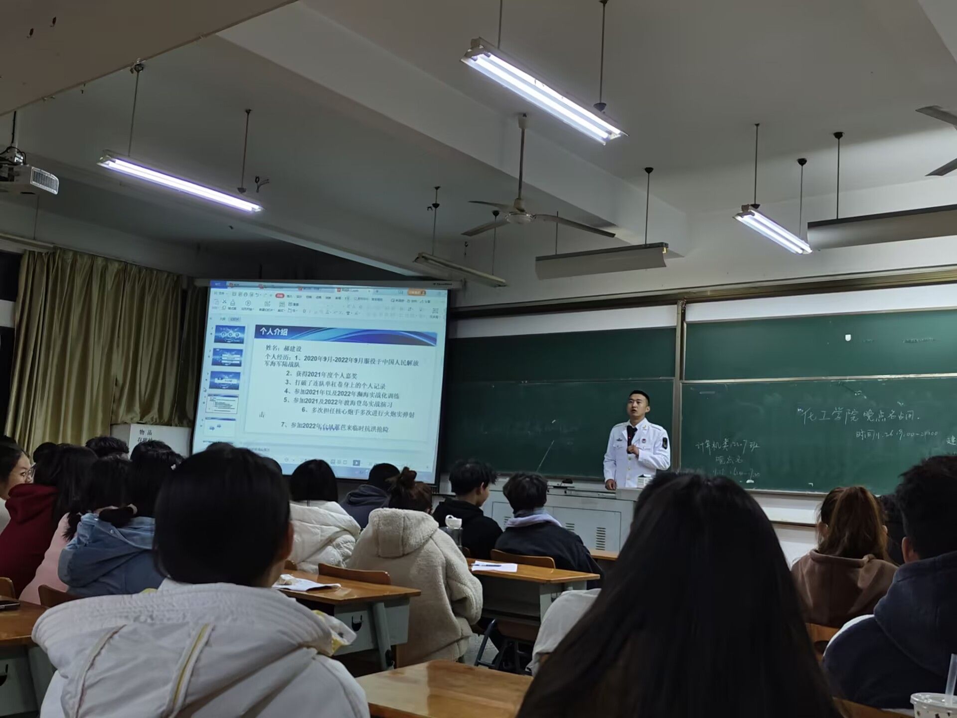 还邀请了役学生士兵郝建设就参军入伍的个人经历、军营的生活以及大学生参军入伍的重要意义与同学们作了具体的交流分享。